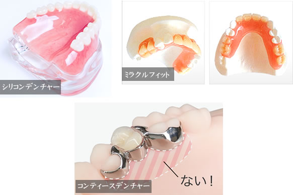 当院では最新の入れ歯から従来の金属床の入れ歯まで様々な種類の入れ歯を取り扱っております。